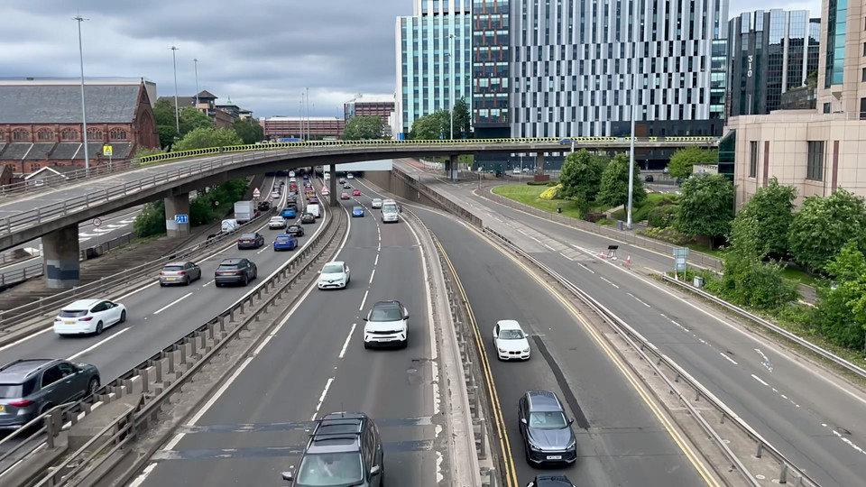 Daily walk crossing the highway over a bridge in central Glasgow.